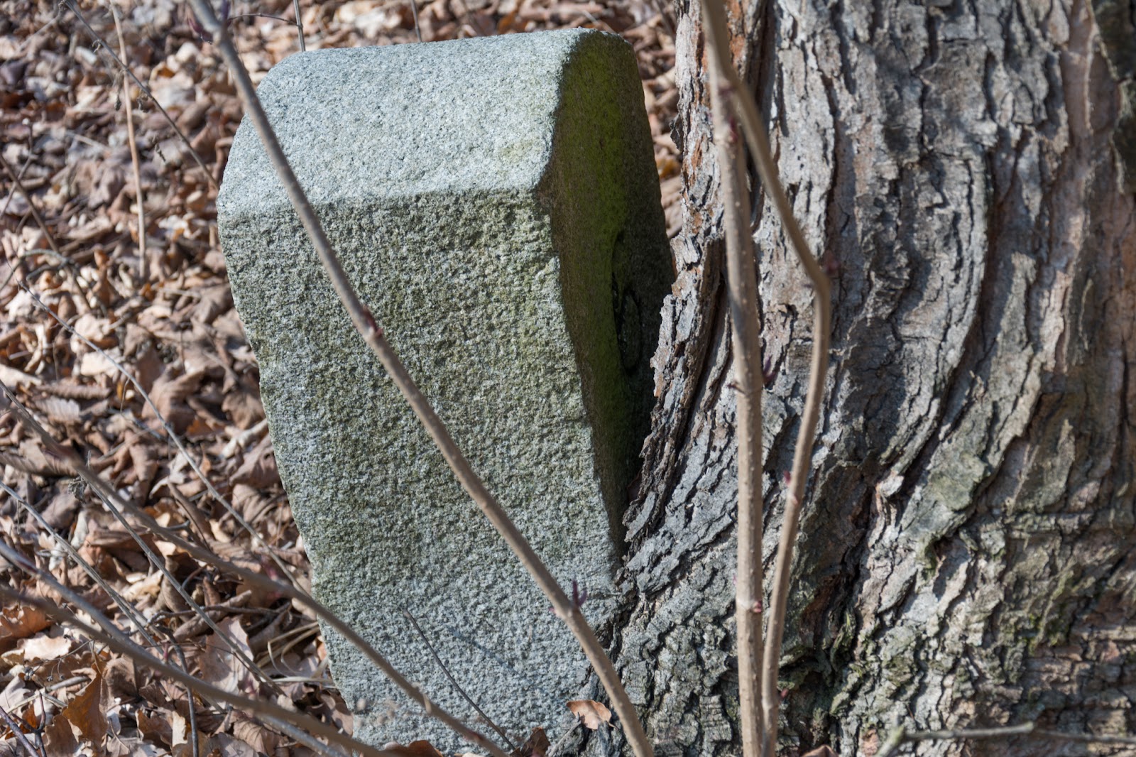 Na dawnym przejściu granicznym Trzebina - Bartultovice stoi kamienny drogowskaz mówiący, że do Opawy jest 51,122 metry.