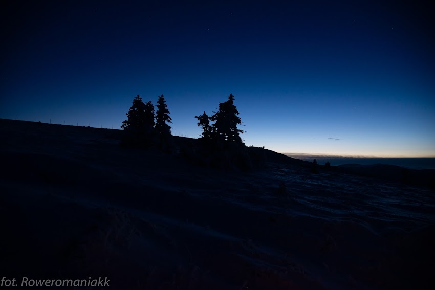 Tak sobie zdecydowałem, że pyknę trasę ze Szklarskiej Poręby do Karpacza. Tak więc nic nowego. Jednak dla mnie liczyła się właśnie nocna fotografia. Jednak z dotarciem w Karkonosze komunikacją publiczną jest ostatnio coraz gorzej. Coraz więcej jest likwidowanych połączeń. Dawniej wsiadałem w autobus z rana i jeszcze tego samego dnia mogłem zimową porą oglądać zachód słońca z głównej grani Karkonoszy. Teraz jest z tym naprawdę trudno....
